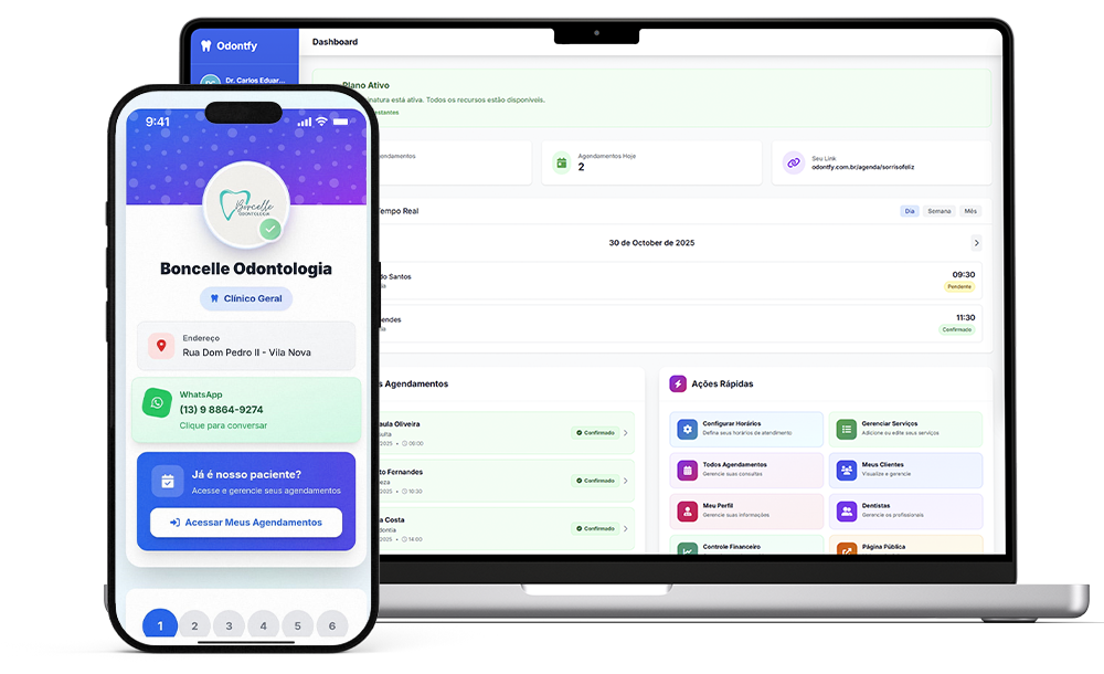 Gerencie seus pacientes, horários e pagamentos em um só lugar, sem planilhas, sem complicação. Comece seu teste grátis de 7 dias e veja como o OdontFy facilita sua rotina.